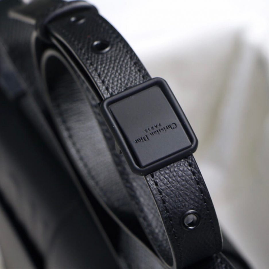 Adjustable leather shoulder strap with ‘Christian Dior’ military-inspired buckle