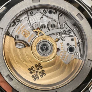 The 42.2mm wide and 11.9mm thick case keeps from being the typical chronograph since the flyback chronograph CH 28-520 C caliber movement allows the chronograph hand to function as the seconds hand as well, with Patek crediting the friction-free clutch for this. As a flyback chronograph with no seconds sub-dial, you see the 60-minute chronograph counter which is aesthetically similar to the case shape of the watch at 6 o??clock. Again, the orange chronograph hand, 60-minute sub-dial hand, and sub-dial minute markers add just enough color to the watch. What irritates me to no end is the fact that the date window can??t match the dial color. It??s a shame, and one that carries across several Patek models including the Nautilus.