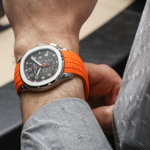 Of course it wouldn??t really be an Aquanaut without the composite rubber strap, and the chronograph comes with both the black and the orange straps. While the black one looks great, I would probably go all out and wear the orange one until I start to get bored of it. It??s also worth noting that Patek has updated the strap and it now features four catches to improve the clasp. Of course, the watch isn??t just sporty by design, it??s also got a water resistance rating of 120m, so go ahead and wear it out on weekend trips.