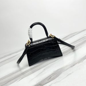 Hourglass XS Handbag in black crocodile embossed calfskin