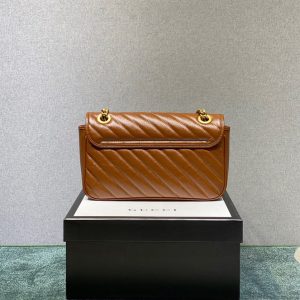 Sliding chain strap can be worn as a shoulder strap with 22?? drop, as a top handle with 12?? drop or as a cross body bag.