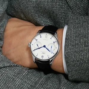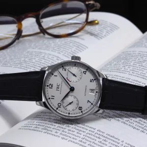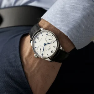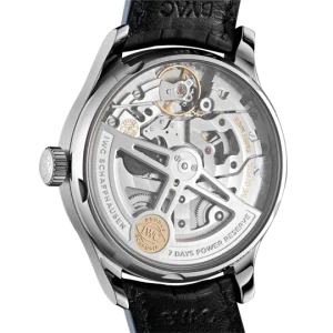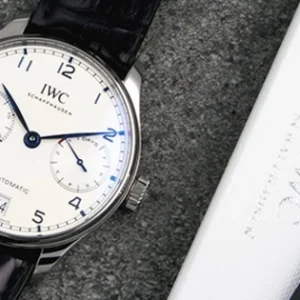 Showcasing the high-quality craftsmanship for which IWC Schaffhausen is known, the Portugieser reflects a long tradition of Swiss watchmaking. It is recognized globally for hallmark designs including a large case, Arabic numeral markers and a symmetric dial.