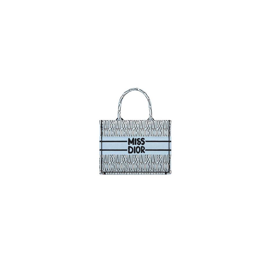 Pale Blue and Black Miss Dior Allover Embroidery (36 x 27.5 x 16.5 cm)