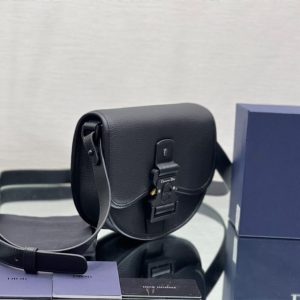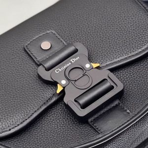 Aluminum buckle with Christian Dior signature and CD initials on flap closure