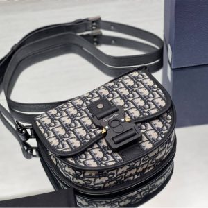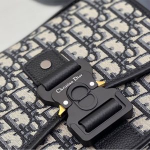 Aluminum buckle with Christian Dior signature and CD initials on flap closure