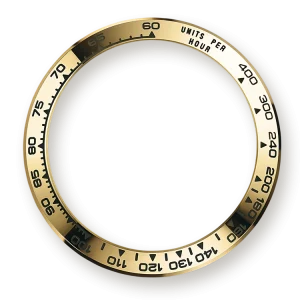 - Fixed, with engraved tachymetric scale, in 18 kt yellow gold