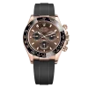 THIS OYSTER PERPETUAL COSMOGRAPH DAYTONA IN 18 KT EVEROSE GOLD WITH AN IVORY DIAL AND AN OYSTERFLEX BRACELET, FEATURES A BLACK CERACHROM BEZEL WITH TACHYMETRIC SCALE.