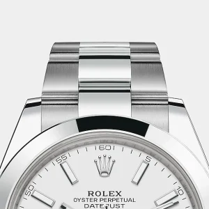 THIS OYSTER PERPETUAL DATEJUST 41 IN OYSTERSTEEL FEATURES A WHITE DIAL AND AN OYSTER BRACELET.