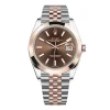 THIS OYSTER PERPETUAL DATEJUST 41 IN OYSTERSTEEL AND EVEROSE GOLD FEATURES A CHOCOLATE, DIAMOND-SET DIAL AND A JUBILEE BRACELET.