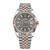 THIS OYSTER PERPETUAL DATEJUST 41 IN OYSTERSTEEL AND EVEROSE GOLD FEATURES A SLATE DIAL AND A JUBILEE BRACELET.