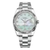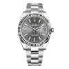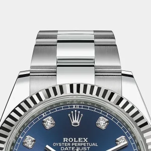 THIS OYSTER PERPETUAL DATEJUST 41 IN OYSTERSTEEL AND WHITE GOLD FEATURES A BRIGHT BLUE, DIAMOND-SET DIAL AND AN OYSTER BRACELET.