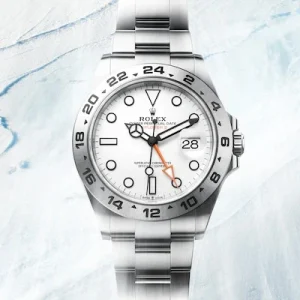 The Explorer II features a date display, an additional orange 24-hour hand and a fixed bezel with 24-hour graduations, enabling day to be distinguished from night. It became the watch of choice for speleologists, volcanologists and polar explorers.
