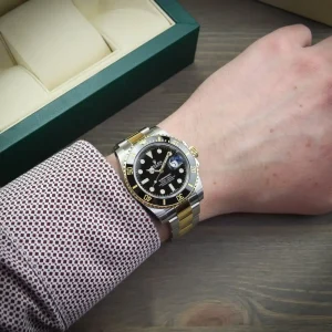 Since the Submariner’s inception, Rolex has consistently upgraded and updated it with the latest technology, all while staying true to its original design. One of the first updates came in the late 1960s, when the brand added a date display to the dial. By the mid-1970s, the Submariner models began showing many of the attributes we see today, like the transition of the Submariner text on the dial from red to white, the addition of sapphire crystal in place of acrylic, a new case design that increased the model’s water resistance to 300 meters, and an upgraded movement offering quick-set date functionality.