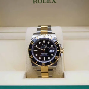The Rolex Submariner might be the most recognizable watch in the world, and when crafted in two-tone steel and yellow gold like this ref. 116613, the Submariner becomes even more so an icon of serious luxury. We love the six-digit Submariners from this era for the refined case and bracelets, the ceramic bezel insert, the svelte 13mm thickness, and the venerable 3135 automatic winding movement with date and 48-hour power reserve.