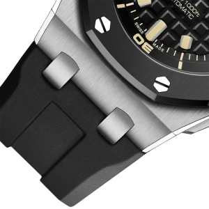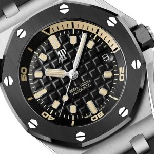This limited edition of 300 pieces combines 18-carat white gold with black ceramic. It also sports the latest selfwinding movement, Calibre 4308, the new interchangeable strap system and a dial aesthetic fit for the greatest adventures.?Available in selected Audemars Piguet Boutiques