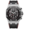 A watch made for adventure. Black with a hint of red to accentuate the chronograph functions and strap. It features a typical combination of stainless steel, ceramic and rubber, typical of the Royal Oak Offshore.