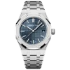 ??Bleu nuit nuage 50?? dial with ??Grande Tapisserie?? pattern, white gold applied hour-markers and Royal?Oak hands with luminescent coating.