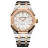 The slender, architectural form of the Royal Oak is outlined in a 37 mm case size and a two-tone material mix: steel and 18-carat pink gold. A pink gold-toned ??Grande Tapisserie?? dial beautifully underlines the design of this horological icon.