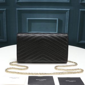 Saint Laurent Chain-strap YSL-plaque grained-leather wallet